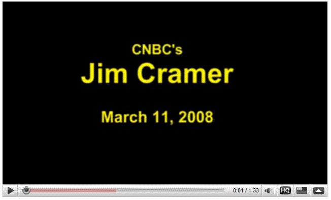 The Schwab event was in early March 2008, the weekend before Bear Stearns was handed over to JP Morgan, compliments of taxpayers. As we all know, much has happened since then. Yet, despite contacting CNBC on numerous occasions before and since then, including Cramer's show, I have heard nothing. In fact, I contacted Larry Kudlow's production crew in May 2007, as well as several times thereafter and heard nothing. This man is a compete idiot. He doesn't even have an economics degree and he claims to be an economist.