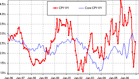 As Japanese growth numbers for 2006 and 2007 have been revised higher to 2.5%. the Japanese central bank is increasingly looking to raise interest rates further from the current 0.25%, after spending many years at 0% (up from 0% in July 06). Interest rate forecasts suggest that rates could rise to as high as 2.5%, which could spell an end to the 'carry trade'.