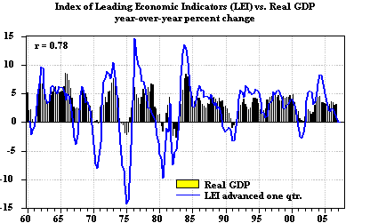 Today the Conference Board reported that its index of Leading Economic Indicators (LEI) for February declined by 0.5% on the heel's of January's downwardly revised 0.3% drop. The January-February LEI average is down 0.49% from its Q1:2006 average. If the January and February levels of the LEI are not changed after revisions, then in order for the first quarter's LEI average to equal that of Q1:2006, the March LEI would have to increase 1.7%.
