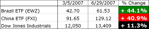 Martin here with a news alert investors would be foolish to ignore: Our favorite overseas markets — Brazil and China — are leaving the Dow in the dust! Again!