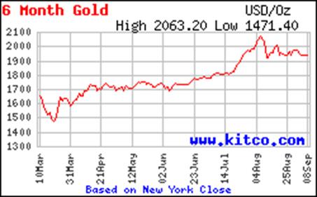 In mid-march, just as the coronavirus was gaining momentum, the price of gold began to rise. After trading sideways from 2015 to 2019, gold rose from a low of $1,471 in mid-March to $2,069 on August 6th, a spectacular 40% rise in five months.